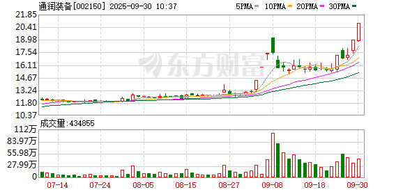通润装备(维权)再度涨停,5个交易日内录得3个涨停,累计涨幅为32.78%,累计换手率为60.40%。截至9:58,该股今日成交量4230.46万股,成交金额8.62亿元,换手率11.80%。最新A股总市值达75.63亿元,A股流通市值74.64亿元。
